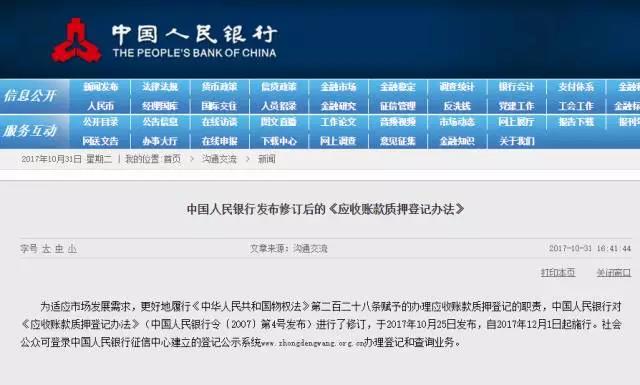 時(shí)隔十年,應(yīng)收賬款質(zhì)押新規(guī)于2017年10月25日發(fā)布,自2017年12月1日起施行。