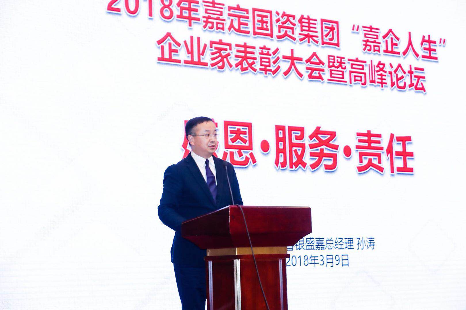 3月9日,我司在2018年嘉定國資集團(tuán)“嘉企人生”企業(yè)家表彰大會暨高峰論壇上獲得“企業(yè)最佳貢獻(xiàn)獎(jiǎng)”。公司總裁孫濤上臺領(lǐng)獎(jiǎng)并作為論壇唯一的企業(yè)代表發(fā)表了以“感恩·服務(wù)·責(zé)任”為主題的獲獎(jiǎng)感言。